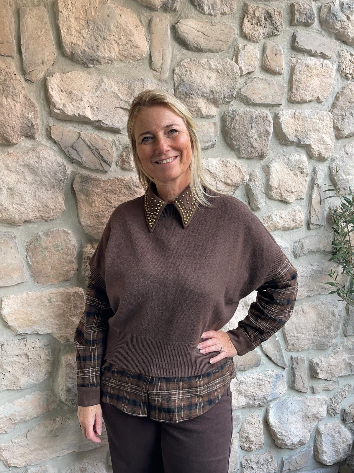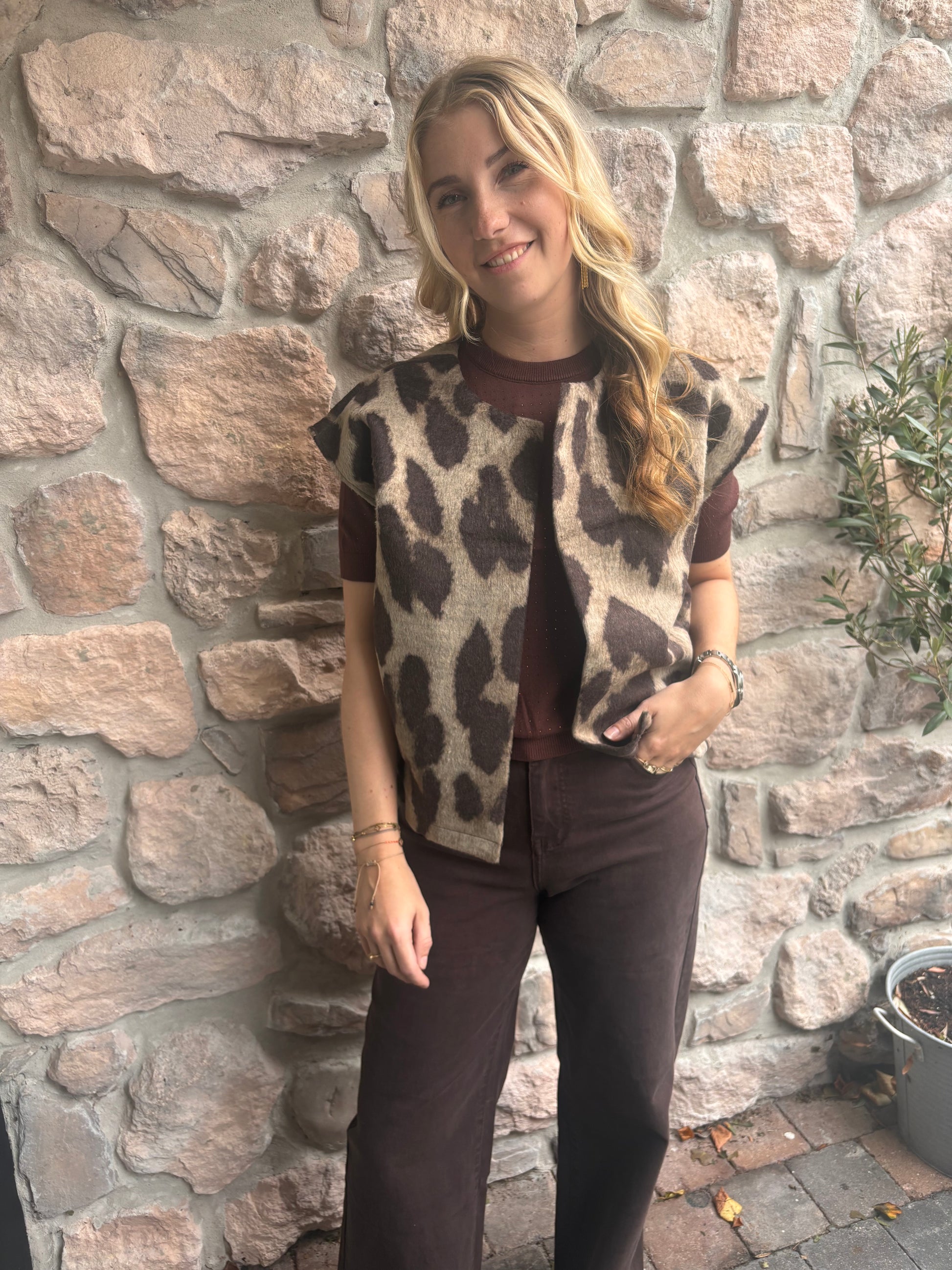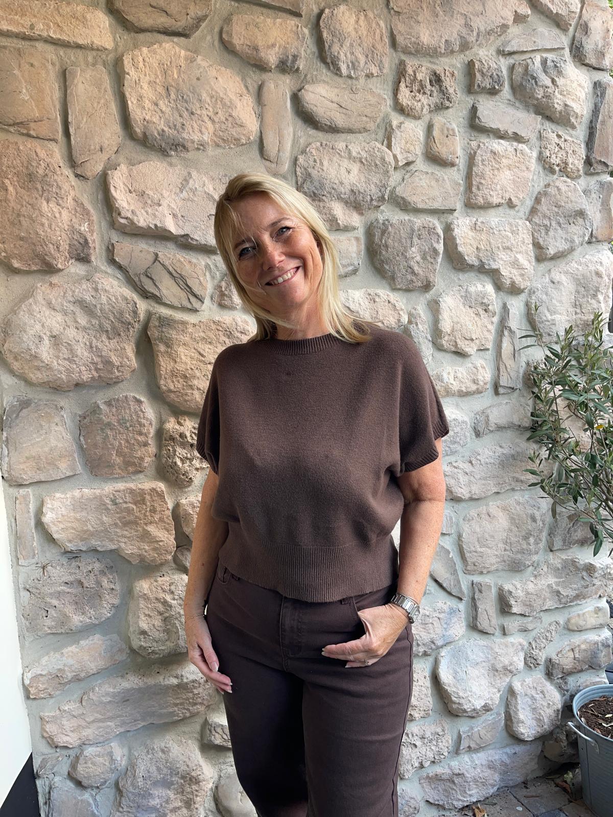 Deze donker bruine broek is een echte eyecatcher voor dit seizoen waarin we bruin heel veel gaan zien! Het is een wijde broek met veel stretcht. Wij adviseren de broek in een maatje groter te bestellen!