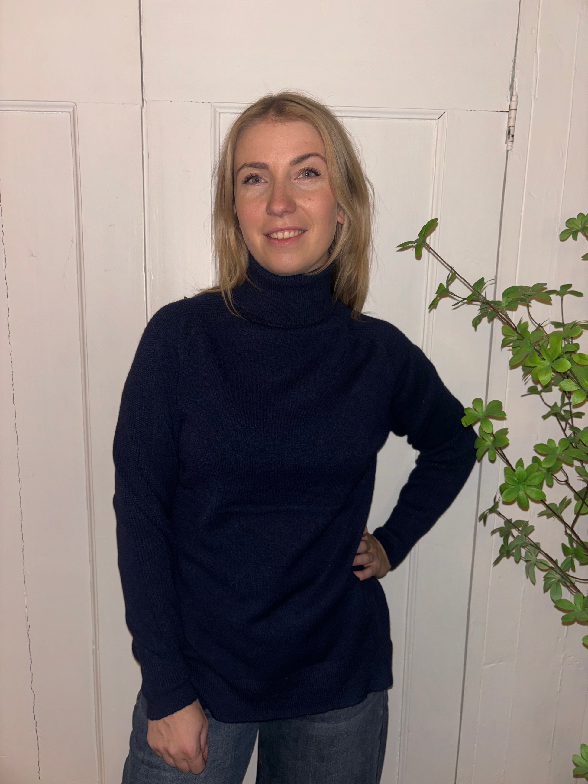 Een heerlijke coltrui mag nooit ontbreken in je garderobe.De trui heeft een leuk klein detail op de mouw en een klein splitje aan de zijkant. De trui is 1 maat. valt tot maat 40/42. Leuk te combineren met onze ruit blazers.